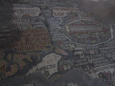Mosaic map. We stopped at Madaba, known as the “City of Mosaics.” On the floor of the Greek Orthodox Church of St. George lies the famed Madaba Map. This is the oldest surviving mosaic map of the Holy Land, dated to the middle of the sixth century. The map originally contained about 150 captions in Greek of the major biblical sites encompassing Jordan, Israel (including a detailed map of Jerusalem), Lebanon and Egypt. Thought to be the most exact map of the Holy Land crafted prior to modern cartography, the Madaba Map shows the site of Jesus’ baptism, the allotments of the 12 tribes of Israel, and the walls and streets of the Holy City of Jerusalem. Was it crafted to aid early pilgrims making their way from one holy place to another? Did the artisans hope to represent Moses’ vision of the Promised Land gleaned from Mount Nebo? Or was it designed to aid the spiritual experience of those early Christian worshippers?
