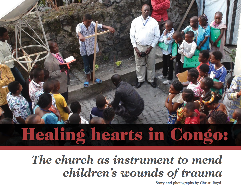 Dorika, Kanyere, Gelord, Enock, Deborah, Gradi and Glode are just seven of the 50 youngsters who met up last August at a children’s camp that was part of a nine-day training seminar for 30 facilitators of trauma healing for children in Goma, East Congo. The event was organized by the Protestant Council of Churches in Congo (ECC), which embodies over 70 Congolese denominations nationwide and has historical ties to the Presbyterian Church (U.S.A.) dating back to over a century ago. It was the week that the world was captivated by media coverage of 5-year-old Omran Daqneesh, who, wide-eyed and in shock, became the personification of children’s suffering in war-torn Syria. The images stirred a momentary global outpour of pity and indignation, and still serve as a reminder of children’s innocence and silent witness in times of conflict worldwide.