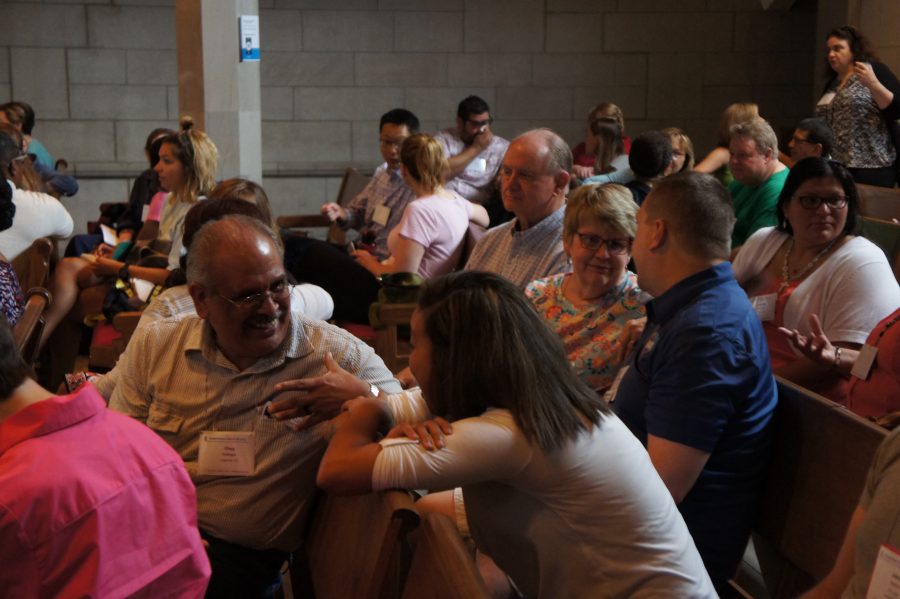 The Bible study included small group discussions – Presbyterians gathered in clusters in the pews of Graham Chapel at Washington University in St. Louis to discuss the ideas he presented, and their own experiences of diversity.