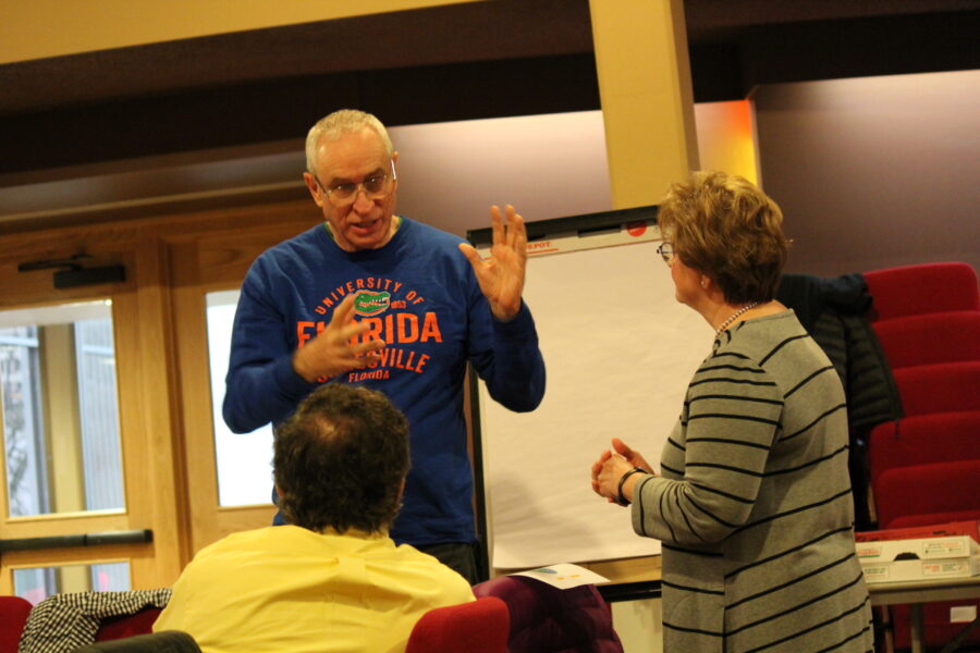 Cliff Lyda (left), Mark Hostetter and Jo Stewart brainstorm about possibilities.
