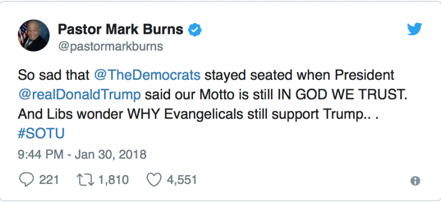 In his 80-minute speech, the president declared Tuesday (Jan. 30) that “Americans are dreamers too” and said, “The motto is, ‘In God we trust.’”