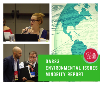 After the Environmental Issues Committee voted (with 35 in favor and 20 opposed) to recommend that Presbyterian Church (U.S.A.) fully divest its holdings in fossil fuel companies, commissioners opposed to the recommendation began crafting a minority report. A draft of the minority report has been submitted to the Office of the General Assembly (OGA). The minority report recommends: “In place of item 08-01, which calls for divestment and ceases the MRTI [Mission Responsibility Through Investment] engagement process, we move that the 223rdGeneral Assembly (2018) approve item 08-08 which continues the MRTI engagement process.”