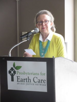 The William Gibson Eco-Justice award (which recognizes individuals with laudable environmental efforts based on faith) went to Pam McVety, who has worked on the restoration of the Florida Everglades, and was named as “one of four most important 20th century female environmental leaders in government in Florida.” She hails from First Presbyterian Church in Tallahassee, Florida, where she transformed her congregation to be carbon neutral, so that “they get 100 percent of their energy needs from the sun.” Her pastor sent in a rave of a letter of recommendation, stating, “She is devastating – in the nicest Christian way.” McVety was electric in her acceptance speech, displaying her zeal in proclaiming “when the synapses stop connecting, I’ll be done.”