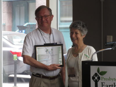 The Restoring Creation Award, which goes to religious organizations involved in outstanding environmental work, went to Interfaith Partners for the Chesapeake (IPC) and was received by Ken Covacs, their representative. IPC endeavors to unite congregations and communities in keeping the Chesapeake Bay Watershed’s soil bountiful and water crystalline.