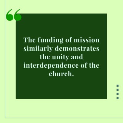 The next paragraph refers specifically to per capita saying, “Each council above the session shall prepare and adopt a budget for its operating expenses, including administrative personnel, and may fund it with a per capita apportionment among the particular congregations within its bounds.” It is not specified here, but traditionally per capita funds the ecclesiastical and internal operations of a council. For example, the stated clerk of a council would be supported by per capita, but traditionally the executive would be paid from the mission budget.