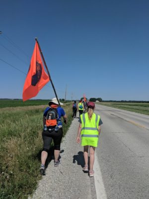 There are 14-25 of us on the Walk for a Fossil Free PCUSA at any given time. We are walking from Louisville to St Louis in preparation for the 223rdGeneral Assembly of the Presbyterian Church (U.S.A.) in pursuit of climate justice. The youngest walker has been 11, the oldest walker in their 70s. On the walk so far, we have collectively walked 164 miles: 10-17 miles a day for 11 days. That’s about eight hours of walking each day.