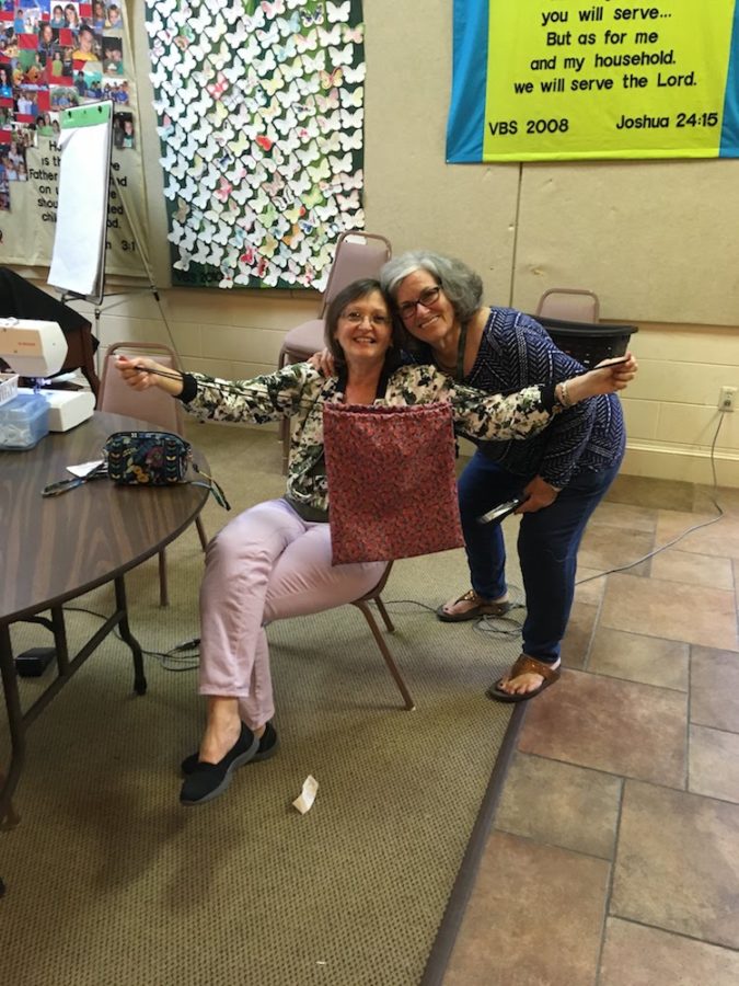 Personal hygiene items are one of the immediate needs of those rescued — as is something to carry those items in. Tina, the founder of Love Missions, designed the first “Freedom Bag,” but she needed someone else to sew it. Her friend Patti, a member of Markham Woods, said, “Let me take it from here!”