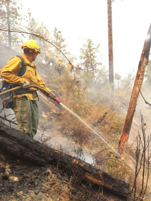 California National Guard Soldiers from Task Force 144 work as hand crews to contain the Carr Fire in Shasta County, California, in early August 2018. (Photo credit: California National Guard, CC BY 2.0)