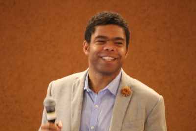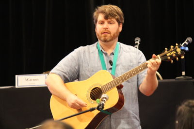 Brenton Thompson helped lead morning worship, featuring music from around the world.