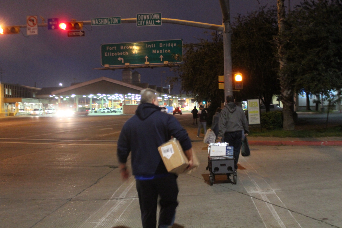 Although by then it was close to 9 p.m., Tucker and Cole continued on to the second bridge, pulling their wagon. Once again, they paid the fee to cross, and met the 27 asylum seekers in the queue there, many of whom were from Cuba. “It’s a humanitarian crisis,” Tucker said. “People are down here dying for help.”
