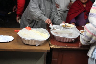 This chilly, windy night, 22 people waited in the dark at the end of the International Bridge. When the food arrived – rice, tortillas, meat, (Tucker had burned the corn) – the women laid it out assembly-line style on a table, just like a church potluck anywhere. They filled plates for the children first. The men ate last.