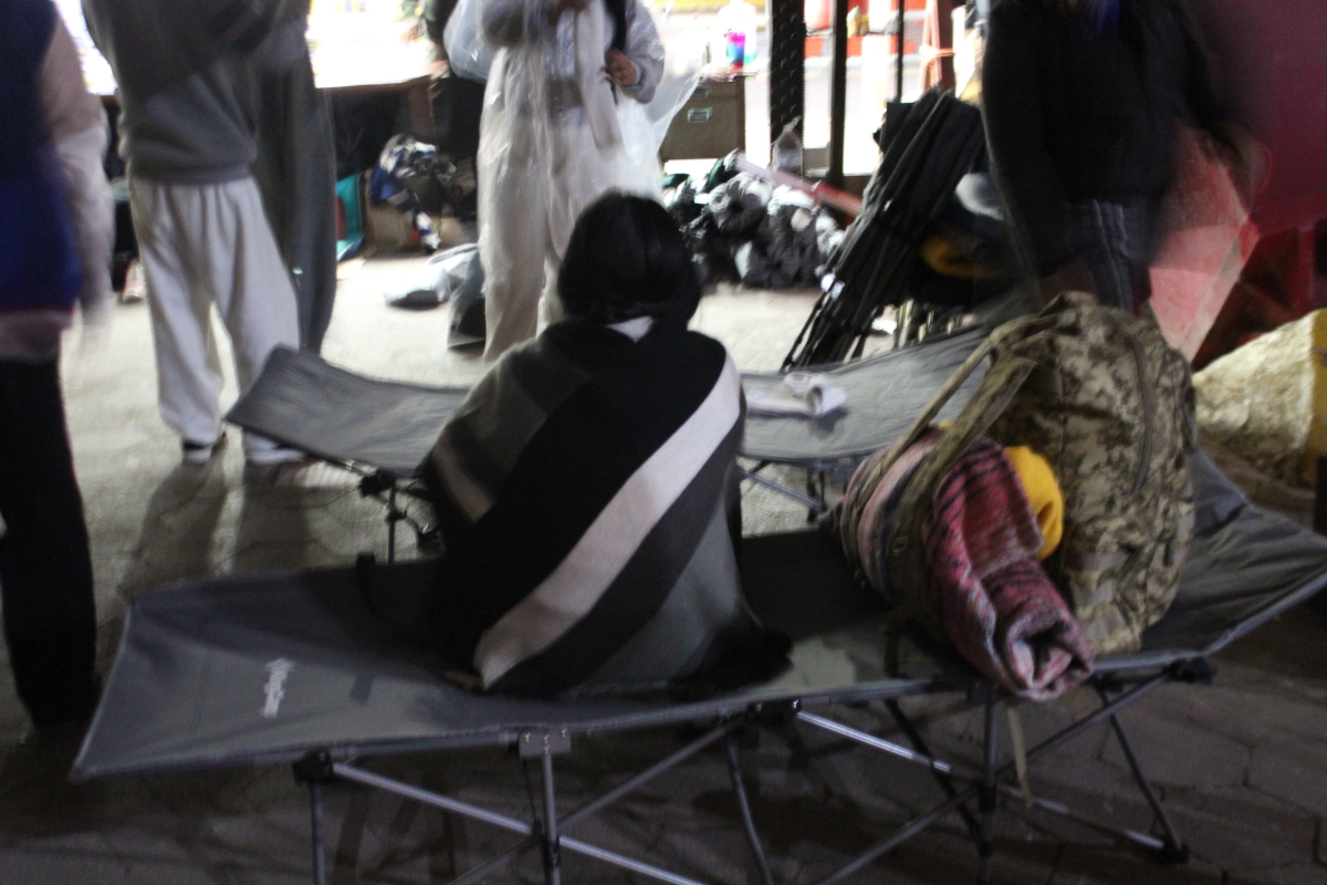 At the bridges then, asylum seekers were sleeping outside on the rocks, exposed to the sun and the rain. That first day, “it was July, 110 degrees. They were baking. They had no cover,” Cordova said. Now, with winter coming on, wind and cold are the problem.