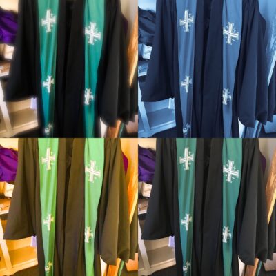 Inside the package was a men’s Geneva robe, carrying a much looser fit than a slender fitting women’s robe, but been hemmed to a shorter-than-typical length, making it a perfect fit for a eight-month pregnant pastor. The accompanying note explained that the robe had once belonged to a male pastor in South Carolina. You could still see his monogram stitched in the tag. But now the robe traveled around the country, from church to church, from expecting pastor to expecting pastor. It was a clever solution to a good kind of problem, and another great witness to the fact that when you belong to a church family, the family you belong to is bigger than just one church.