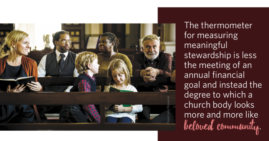 Like all spiritual practices, including prayer or regular worship attendance, stewardship isn’t a one-time event or even seasonal. It’s an ongoing commitment with endless opportunity for growth and increased attunement to God’s call. What’s more, the practice is valuable outside of financial goals. If we quadruple our church bank accounts but aren’t transformed into a community of people who are kinder, gentler, more ready to welcome the stranger, more forgiving and more committed to justice, then we may have practiced fundraising, but we didn’t find ourselves playing in the deepest wells of real stewardship where real change lives. The thermometer for measuring meaningful stewardship is less the meeting of an annual financial goal and instead the degree to which a church body looks more and more like beloved community.