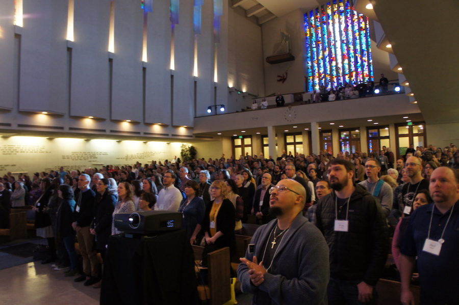 SEATTLE (Outlook) — What does it mean to be woven together as a community of faith? Participants in the 2019 Next Church national gathering, meeting in Seattle Mar. 11-13, considered this during opening worship. Worship demonstrated the conference theme, “Woven together stories of dissonance, sacrifice and liberation,” weaving between multiple languages, various leaders, sung and spoken word, preaching and invitations to reflect through sound, sight and touch.