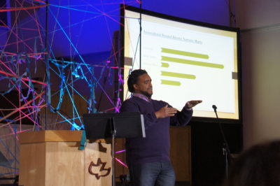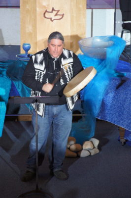 Greaves described for the NEXT Church gathering some of the realities of being a Native person and Christian – for example, that he was baptized at age 7, but later discovered that the white church was not willing to accept an expression of faith that incorporated elements of Native American culture and spirituality.