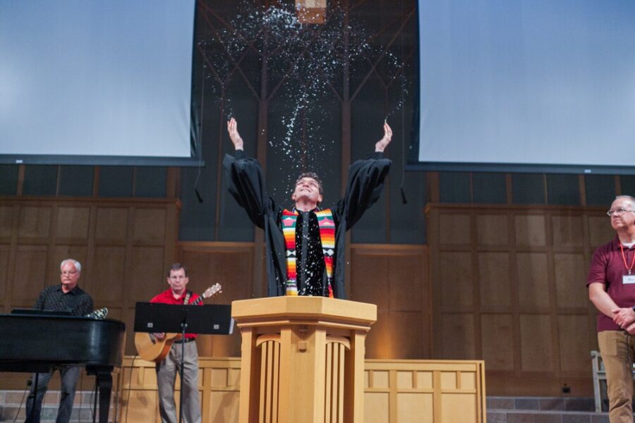 I love this photo. What a perfect picture of joyful acknowledgment of abundance! Throwing the baptismal waters was a playful thing for Scott — playfulness was a defining characteristic of his. But that playfulness, that deep joy you see there, came from a deep sense of the sweetness, the abundance of the gift of God’s grace for all of us.