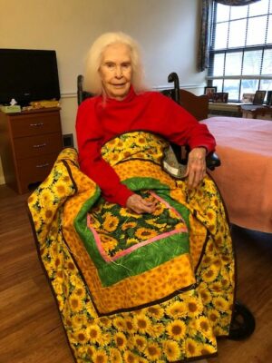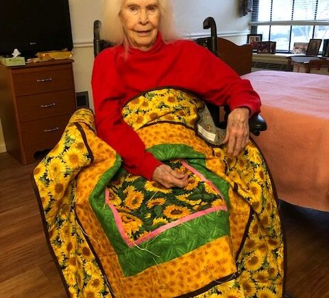 Quilters gather each Monday to create beautiful quilts in a wide variety of colors, patterns and themes. No two quilts are alike! Known as “tied quilts,” the front and back are bound through strands of thread that are tied in knots on the front.