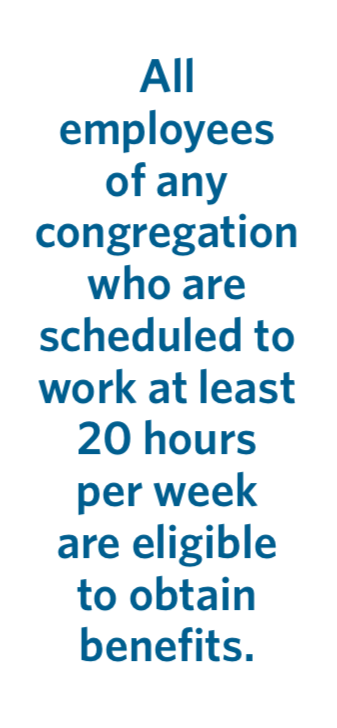 All employees of any congregation who are scheduled to work at least 20 hours per week are eligible to obtain benefits. That includes non-installed ministers (interim, stated supply, contract, etc.) and commissioned pastors (formerly known as commissioned lay pastors or commissioned ruling elders). Non-installed ministers of Word and Sacrament who earn income from the practice of ministry may declare themselves self-employed and buy certain benefits directly.