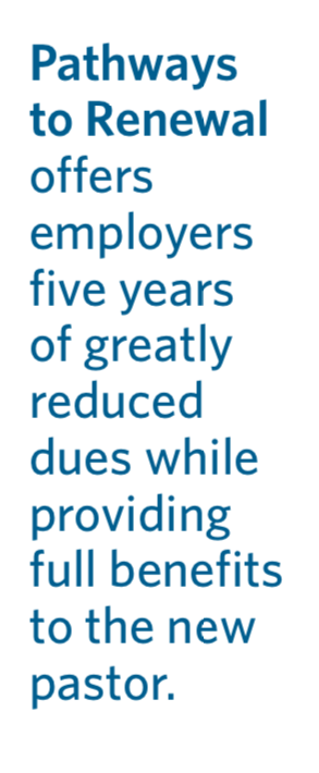 In July 2018, the Board launched a pilot program to invite small churches without a pastor for two years or new innovative ministries to call and install new pastors. Pathways to Renewal offers employers five years of greatly reduced dues while providing full benefits to the new pastor. The newly employed minister must be under 40 and never previously enrolled in Pastor’s Participation. To be eligible for Pathways, a congregation: