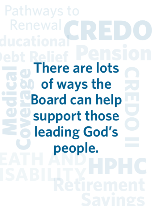 Go to pensions.org to find all the ways the Board is helping, or call 800-773-7752 (800-PRESPLAN). There are lots of ways the Board can help support those leading God’s people.