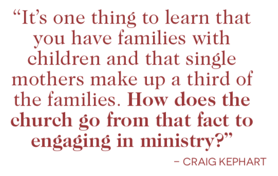 Salter understands the need for action, not just knowledge. “It’s one thing to learn that you have families with children and that single mothers make up a third of the families,” he said. “How does the church go from that fact to engaging in ministry?”