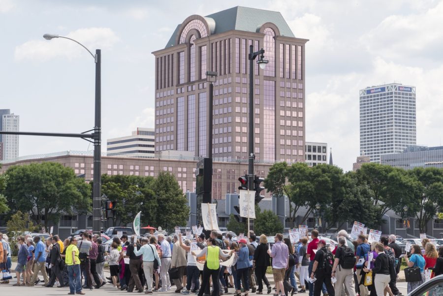More than 570 Lutherans now are marching from the Wisconsin Center to the ICE building in Milwaukee for a prayer vigil in support of migrant children and their families. #ELCAcwa pic.twitter.com/jeVE5goFSo