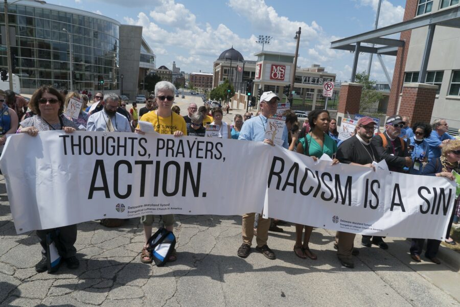 He was “very happy and proud” of the ELCA after the vigil, he said as he marched back to the Wisconsin Center with the group.