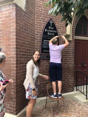 On my first day at First Presbyterian Church in Lexington, where I am now associate pastor, we have a short ritual after each worship service during which a new church sign is hung bearing my name. I know we are not to worship idols, and I try not to look at that sign every time I’m out front, but how good it is to be welcomed and known in this way. My tenure here has begun! It’s in stone! (Well, metal, I think.) How can I help ensure every human who walks through these doors for the first time feels so known and loved?