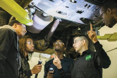 Students at the Automotive Training Center are taught skills to become auto mechanics.