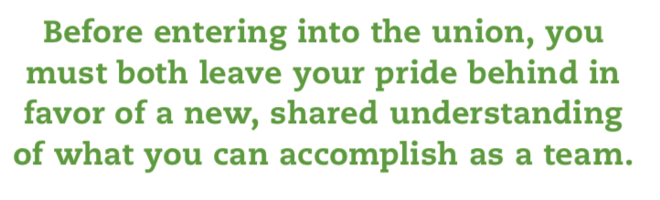 To anyone in a faith community faced with the possibility of a merger, my advice is similar to what I might give a couple considering marriage. Before entering into the union, you must both leave your pride behind in favor of a new, shared understanding of what you can accomplish as a team. Your partnership must have its own identity that is defined by both of your talents and weaknesses. And you must both commit to helping each other achieve your calling. Because when we find a partner who inspires us to grow in faith and purpose, we can only be stronger together.