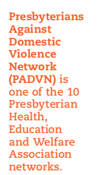 One of those Presbyterian ministers was Bonnie M. Orth, pastor at Mayfield Central Presbyterian Church in New York. Orth and Troy were instrumental in organizing PADVN in 2001 and Orth testified at General Assembly that year to advocate for PADVN. “I call myself a ‘thriver’ instead of a ‘survivor,’” Orth said. Her own experiences with domestic violence and not receiving appropriate pastoral care from her minister fueled her advocacy for women’s rights. Now, Orth continues to train others in a variety of settings.