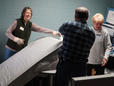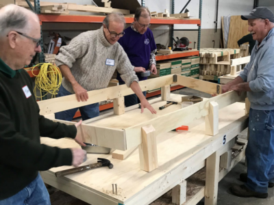 A bed-building event held Monday brought together 23 volunteers representing nine congregations in the Presbytery of Detroit, which has accepted the Matthew 25 invitation extended by the Presbyterian Mission Agency. Those churches included First Presbyterian Church of Birmingham, Grosse Pointe Memorial Church, First Presbyterian Church of Troy, St. Paul’s Presbyterian Church, Jefferson Avenue Presbyterian Church, First Presbyterian Church of South Lyon, Northbrook Presbyterian Church, First Presbyterian Church of Farmington and First Presbyterian Church of Northville. This all-volunteer workforce assembled 68 beds, which will be distributed by churches and social service agencies at no cost to families with children who need a bed.