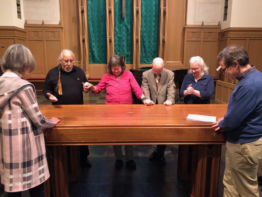 As the soft afternoon light filled the sanctuary of White Plains Presbyterian Church, the small group of leaders representing the presbytery, the Administrative Commission of the Stony Point Church and Sweetwater joined hands around the communion table and prayed for the role that Sweetwater will have in the preservation of native culture and ceremony regionally and in the Western Hemisphere; for the educational programs Sweetwater would offer native and indigenous peoples and their allies; for the nurture of right relationship with the land; and for the sweetness of this moment in which native tribal communities and the Presbyterian church, affirming one another as partners, are writing a new chapter in history together.