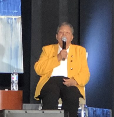 Using no manuscript or written notes, Eckford spent the hour sharing her memories of the events that led to her becoming one of the Little Rock Nine and stories of her time at Central High School. “I had a hard time getting my parents’ permission,” she remembered. “I asked my mom the spring before if I could go to Central.” And her mother, who she called “the queen of no,” surprised her by saying, “We’ll see.”