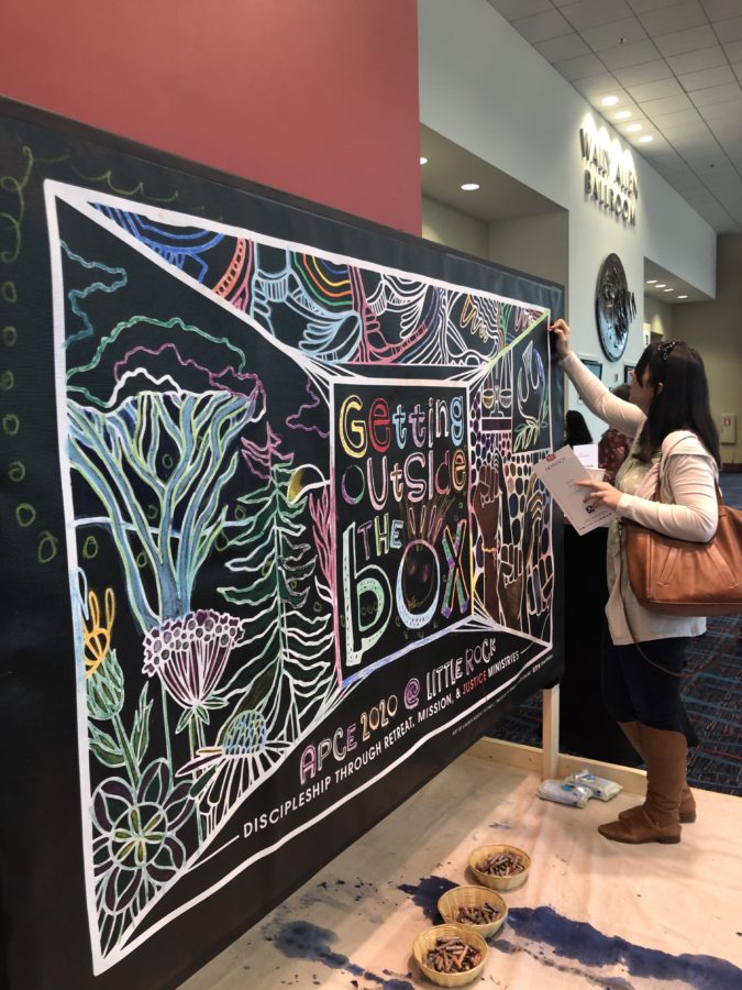 A Sanctified Art, a team of artists, served as conference artists in residence. In addition to worship liturgy, Lisle Gwynn Garrity created a liturgical painting as worship unfolded each day.