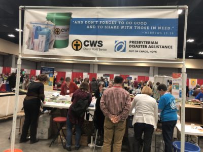 Mission project and offering. Space in the exhibit hall was designated for Presbyterian Disaster Assistance hygiene kit inspection and packing. Hygiene kits – zip-close bags containing a comb, washcloth, bandages and more – were shipped to the Disaster Assistance Center at Ferncliff Camp and Conference Center near Little Rock. In partnership with PDA and Church World Service, the Disaster Assistance Center is one of two centers in the U.S. to receive these kits and ship them to disaster sites in the U.S. and abroad. APCE attendees were invited to help with quality inspection of the kits and preparing them for shipment. Over the course of the conference, they completed work on 1,620 kits.