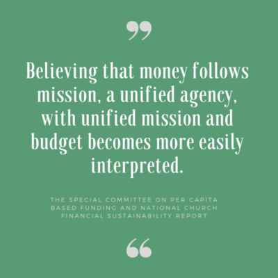 “It is our recommendation to combine, unify, or eliminate duplicated efforts and funding needs in order to work as a unified church,” the rationale states. “Our recommendations are based on our research that indicated there are significant differences, disparities, and inequalities between how different agencies are funded as well as the use and/or duplication of those funds for similar purposes.”