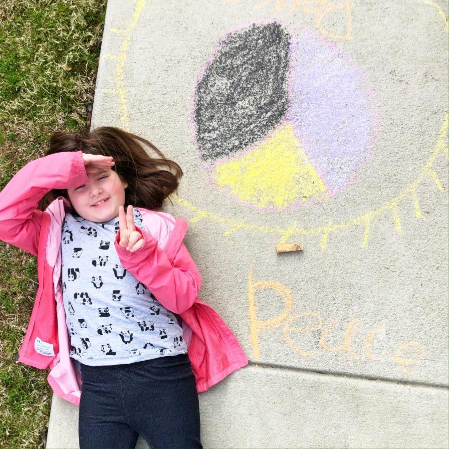 This child opted for a chalk-on-the-sidewalk piece to share with all who pass by her home.