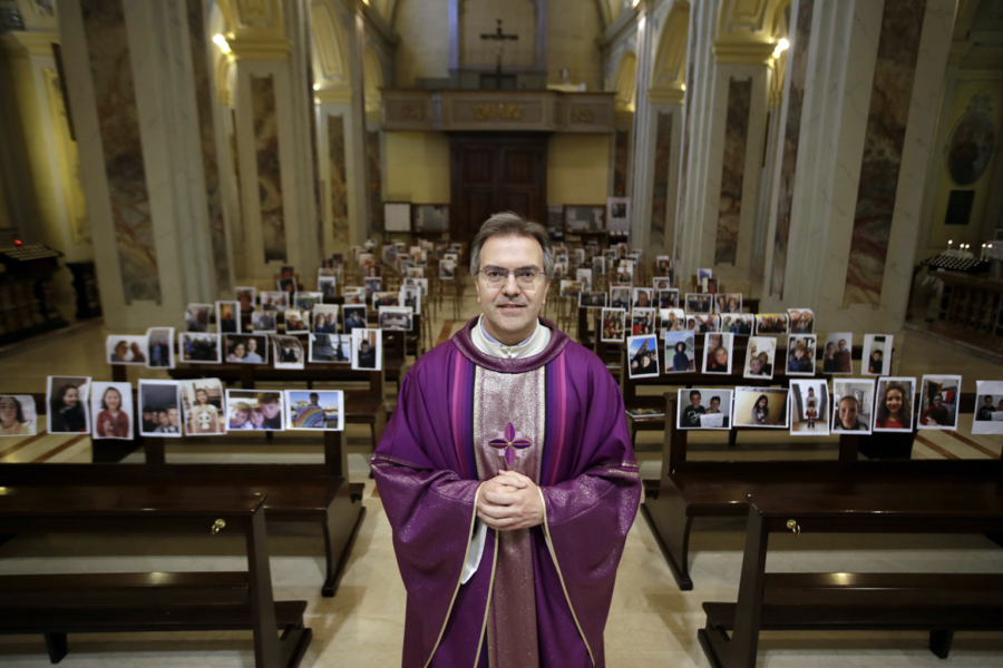 Several priests throughout the country are looking for ways to maintain a sense of community. Not too far from Milan, Don Giuseppe Corbari has taped selfies sent by faithful to the empty pews of his church of Saint Quirico and Giulitta in Robbiano where he continues to say Mass via streaming.