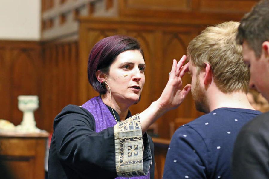 During the day, the Episcopal campus minister, Lutheran campus minister and I hosted “Ashes to Go” at the Free Expression Tunnel on one of the college campuses in Raleigh, North Carolina. Some were thrilled to see us; others murmured that we shouldn’t be there. One refused to take our photo when we asked; another thanked us profusely. My favorite stranger asked as she passed, “It’s what Wednesday?”