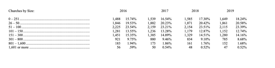 The PC(USA) remains a denomination of mostly small churches – with nearly two-thirds (62.2%) having 100 members or fewer.