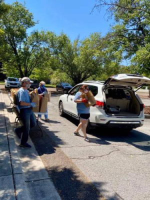 “I had volunteers pack the bags in family groupings, so that no two families were in the building at the same time, and they had to wear masks, they had to wear gloves,” Lovell said. “Then on Saturday, we all came together and staged ourselves in our church parking lots so that only family groups were standing together and everybody else was spread apart.”