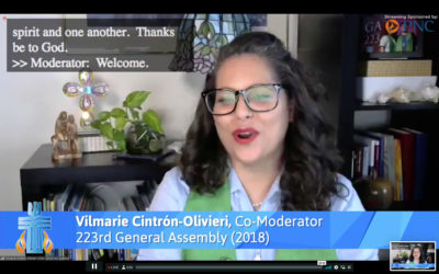 Cintrón-Olivieri started the report by welcoming everyone to the 224th General Assembly, acknowledging that it is a historic General Assembly, gathered for the first time digitally, which “created the opportunity for all of us to be gathered in one place virtually even as we are disbursed around the world.” She stated, “It can be overwhelming but we are grateful to God for being able to use technology in this way.” She went on to acknowledge that the day they assembly opened, June 19, is Junteenth, the day set aside to commemorate the announcement of the emancipation of enslaved people. She reminded all gathered, “It is not how far we’ve come, but how much work we have yet to do.”