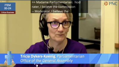 As the assembly was considering the unified budget a concern was raised about giving the agencies the flexibility to amend the budgets as the COVID-19 situation develops. A participant asked if GA could meet again to review and approve those changes. Tammy Wiens, a minister commissioner from Pittsburgh Presbytery, moved to amend the item to hold a special meeting of the General Assembly in 2021 to review the budget modifications. Kerry Rice informed the assembly that the financial implications would probably be around $200,000, which would add 15 cents to the per capita rate. The motion was not approved by the commissioners, but the Young Adult Advisory Delegates did support the amendment.