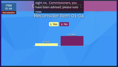 Her argument: When the assembly voted on June 19, at least seven commissioners were lined up virtually to ask that more items be considered this year and not be referred — and “it’s important to seek to hear as many voices as we can.”