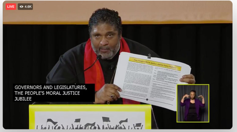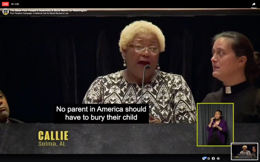 William J. Barber, the other co-chair of the Poor People’s Campaign, spoke next and thanked all who were attending this digital rally. He reminded listeners that they are called to hear the stories of those living in poverty, and to put a face and voice to the 140 million poor and low-income people in the U.S. “You change the narrative by changing the narrators. You have to have a face and a real story.”