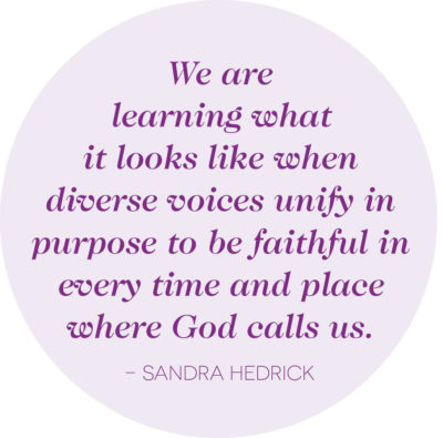 HEDRICK: Signs of renewal are already here! Stories of innovation and collaboration abound as our worship and service take creative and meaningful forms! Leaders are confessing that they don’t have all the answers (amen!). New leaders and prophetic voices are emerging in every generation. In the church where I serve as pastor, our youth group leads the music and liturgy on the third Sunday of every month. After our service, our sister church worships in Spanish in the very same space. During the rest of the week, our modest campus is alive with the activities of community groups, our preschool and the satellite location of a Missionary Baptist church that worships on Saturday nights. In the PC(USA) there are new worshipping communities, visible fellowship among the generations and more relevant and timely resources coming from all of our six agencies. The Spirit’s work shines brightly in our continuing response to the pandemic in so many ways, including creative worship online. We are learning what it looks like when diverse voices unify in purpose to be faithful in every time and place where God calls us. I am also inspired when I look at the history of our church, including very tough and divisive times, and I see how God has worked through countless people to fashion the wonderful church that I love.