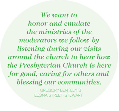 BENTLEY & STREET-STEWART: We want to honor and emulate the ministries of the moderators we follow by listening during our visits around the church to hear how the Presbyterian Church is here for good, caring for others and blessing our communities.