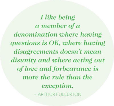 FULLERTON: I’m a lifelong Presbyterian, and I love this church for its willingness to stand together even when we disagree. I love the way our polity embraces lay leadership and how we can be responsive to the movement of the Holy Spirit. We are devout without being doctrinaire; faithful even when doubting; and kind and merciful even when angry. In short, I like being a member of a denomination where having questions is OK, where having disagreements doesn’t mean disunity and where acting out of love and forbearance is more the rule than the exception.
